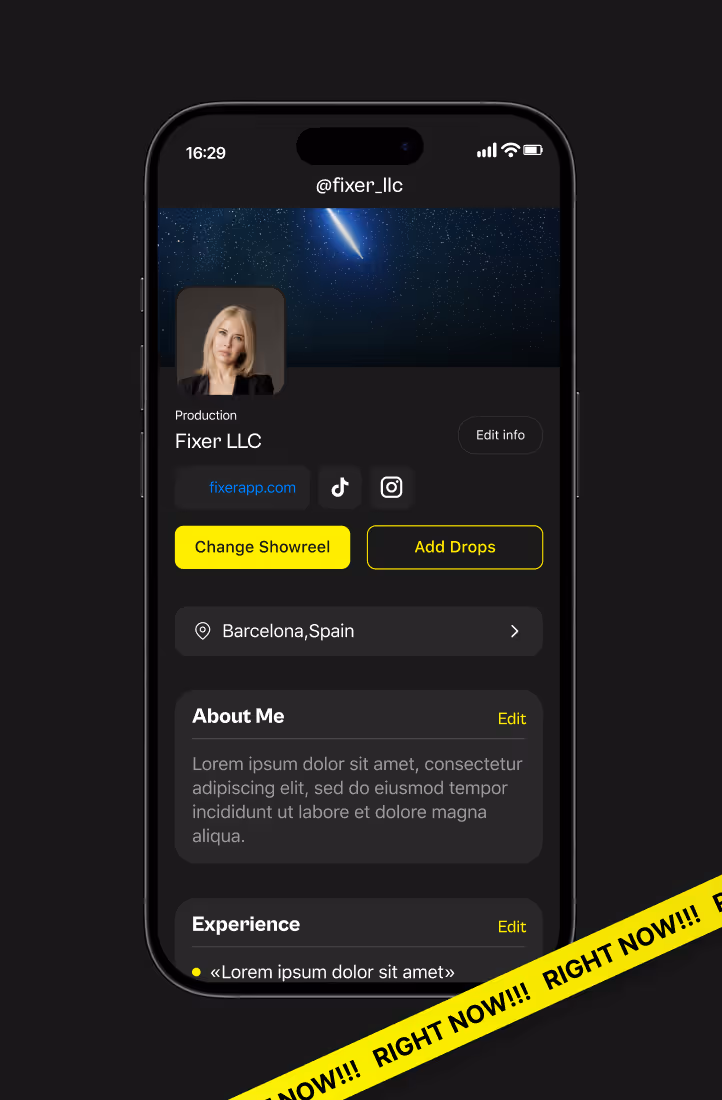 Fixer is a revolutionary app designed for the film industry. With over 100 million workers in the industry worldwide, Fixer is the platform that unites them all. Whether you're a Producer, a Director, a Cinematographer, or any other type of film industry professional, Fixer connects you with the right people for your next project.