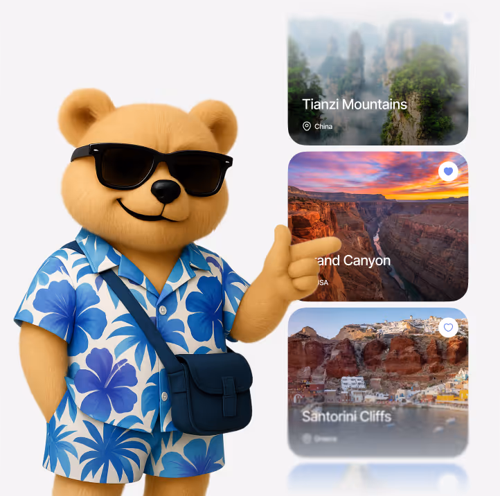 From flights and hotels to cars and tours, everything is curated and booked in just a few taps - guided by a charming 3D AI mascot named Teddy. With real-time pricing and a sleek interface, trip planning becomes seamless, smart, and stress-free.